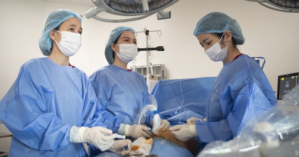 Các bác sĩ Trung tâm Can thiệp bào thai - Bệnh viện Phụ sản Hà Nội thực hiện kỹ thuật cho sản phụ - Ảnh: Bác sĩ cung cấp