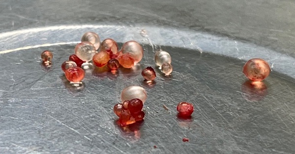 Các tinh thể silicon được bác sĩ nạo ra từ tay người phụ nữ - Ảnh: BV cung cấp